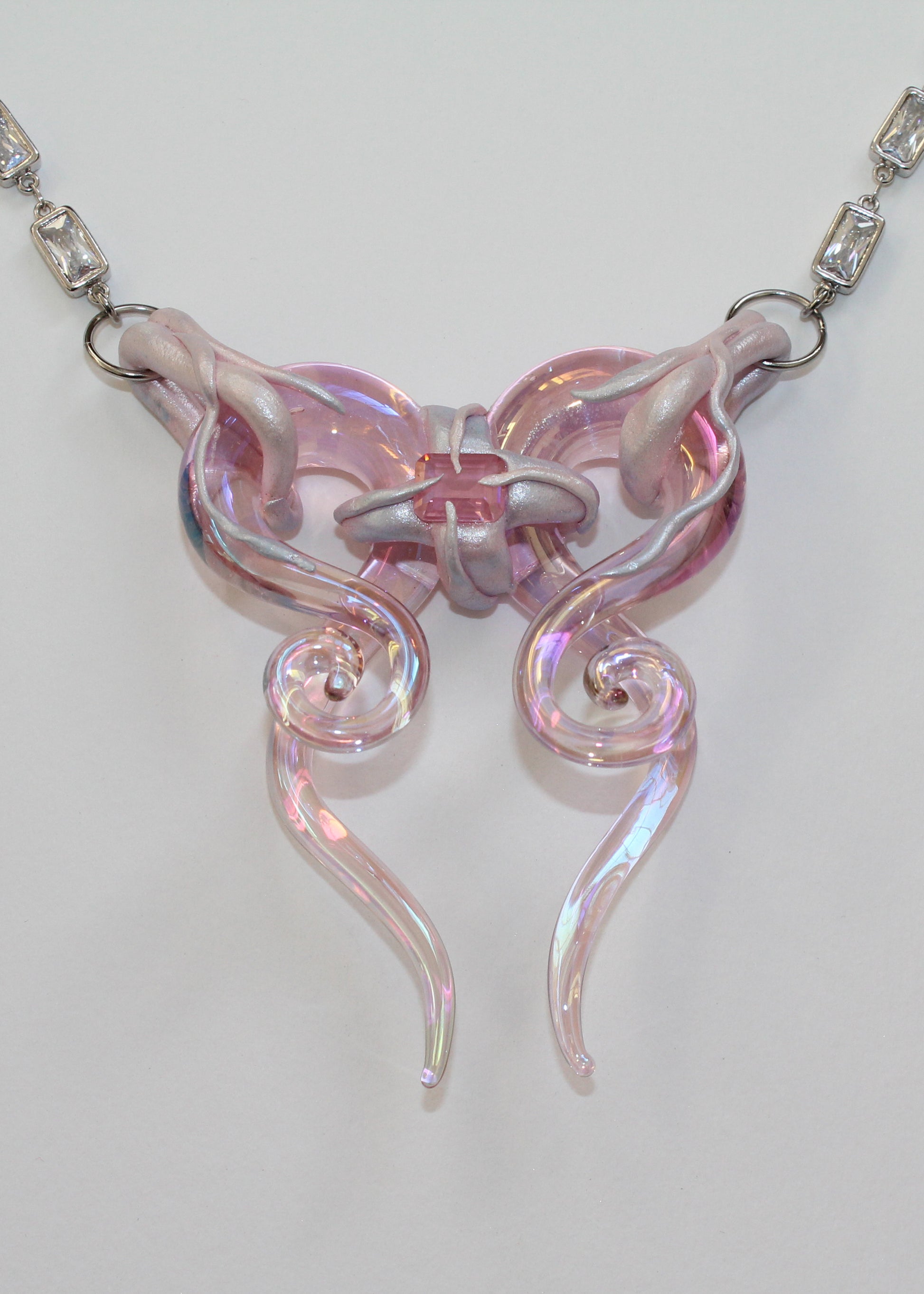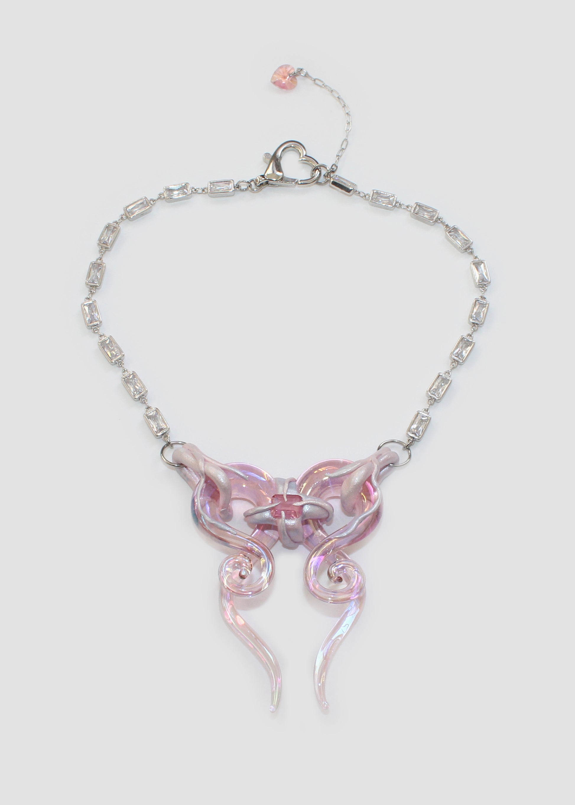 Materials: glass, epoxy clay, crystal, CZ, silver tone glass and metal chain