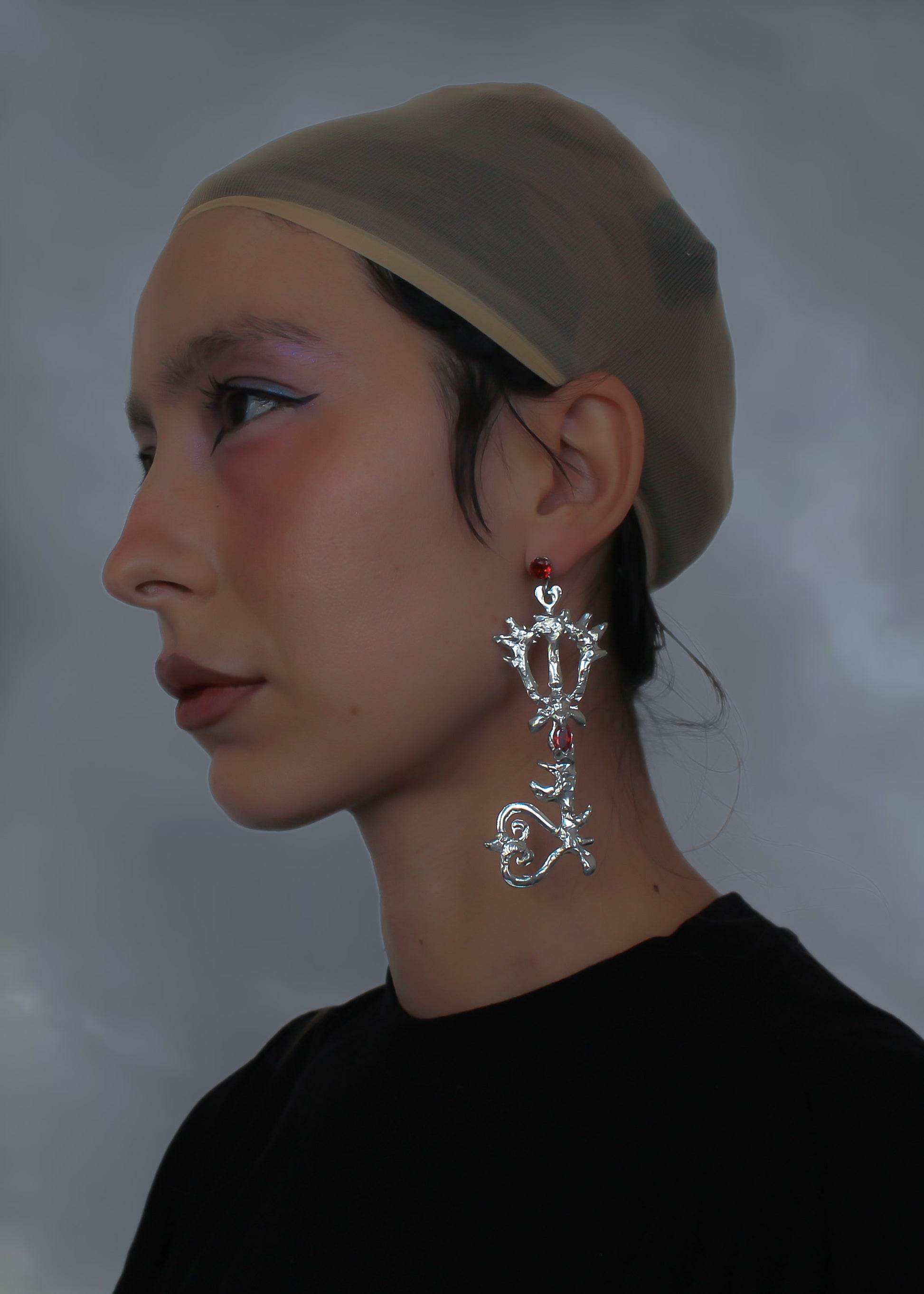Stainless steel post earrings, brass, silver, tin, red CZ